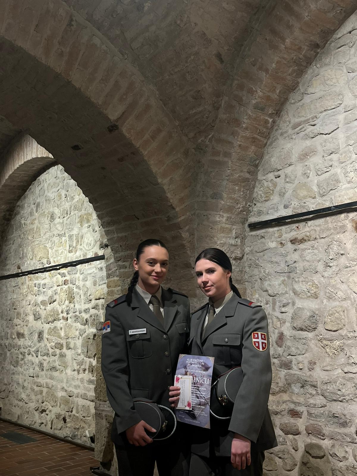Ученице 54. класе Средње стручне војне школе ,,1300 каплараˮ, Тина Јањићијевић и Николина Обрадовић, присуствовале су синоћ, 24. марта, књижевној вечери одржаној у Конаку кнегиње Љубице. Организатори догађаја били су представници Интернационалне полиције, уз подршку пуковника Небојше Пантелића.